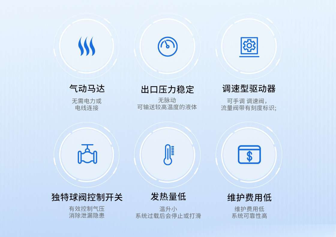 2.氣動防爆輸送壓力高、平穩,可以實現低粘度液體中高壓輸送;