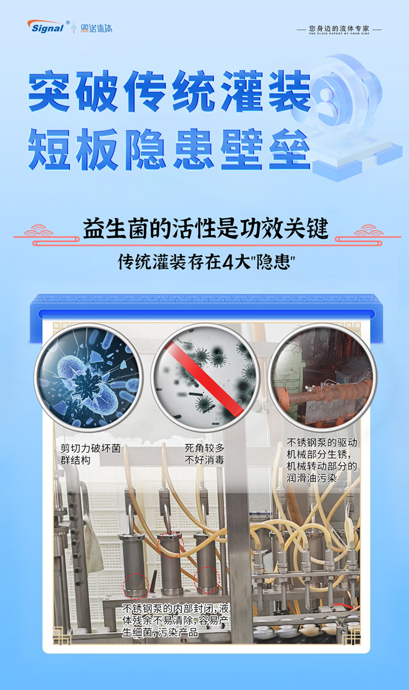 益生菌產品的核心價值在于其活性,然而傳統(tǒng)不銹鋼泵卻成了守護活性的“絆腳石”:
