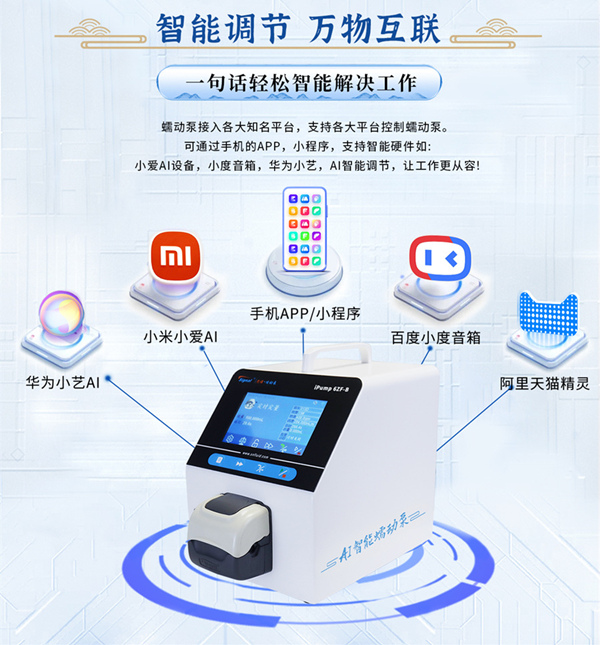 其次是思諾AI智能蠕動泵與各大知名平臺的向兼容性。無論你使用什么平臺或設備,只要連接了思諾AI智能蠕動泵,就能夠對其進行控制。無論是智能手機的APP,還是小程序,都可以輕松實現蠕動泵的調節。對于那些已經使用了智能硬件設備的用戶來說,思諾AI智能蠕動泵可以與小愛AI設備、小度音箱、華為小藝等設備進行互聯,讓用戶通過語音指令就能夠調節蠕動泵,簡直是再方便不過了。